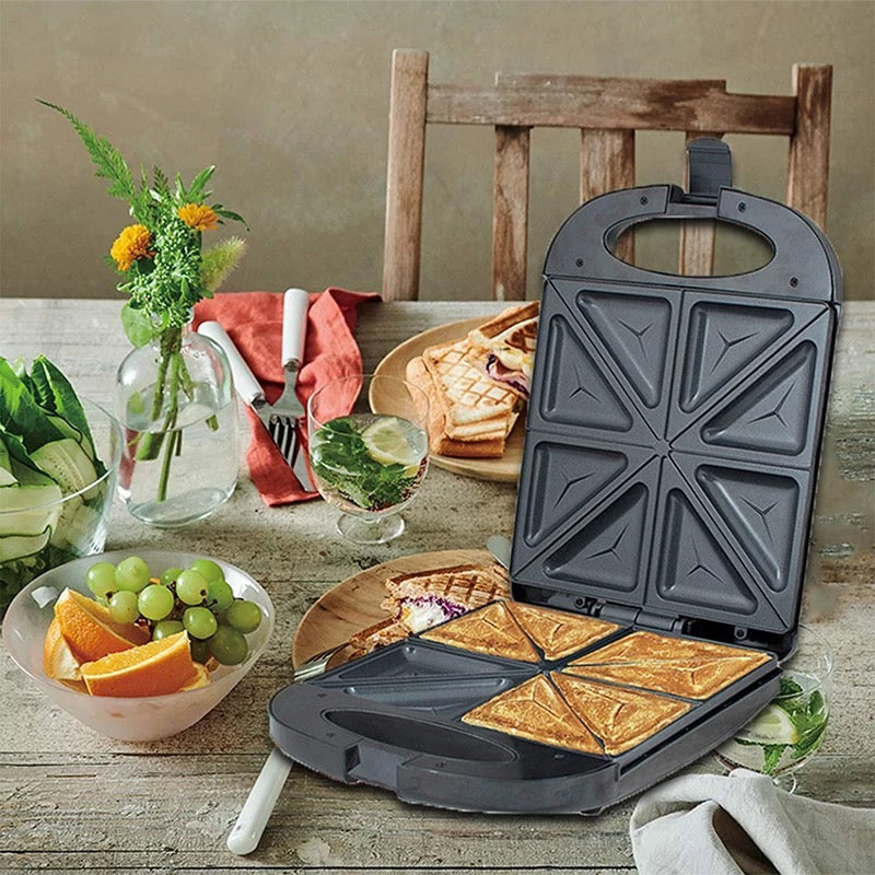 - Interchangeable Plates: Includes two waffle plates, two grill plates, and two sandwich grill plates, providing endless cooking possibilities.