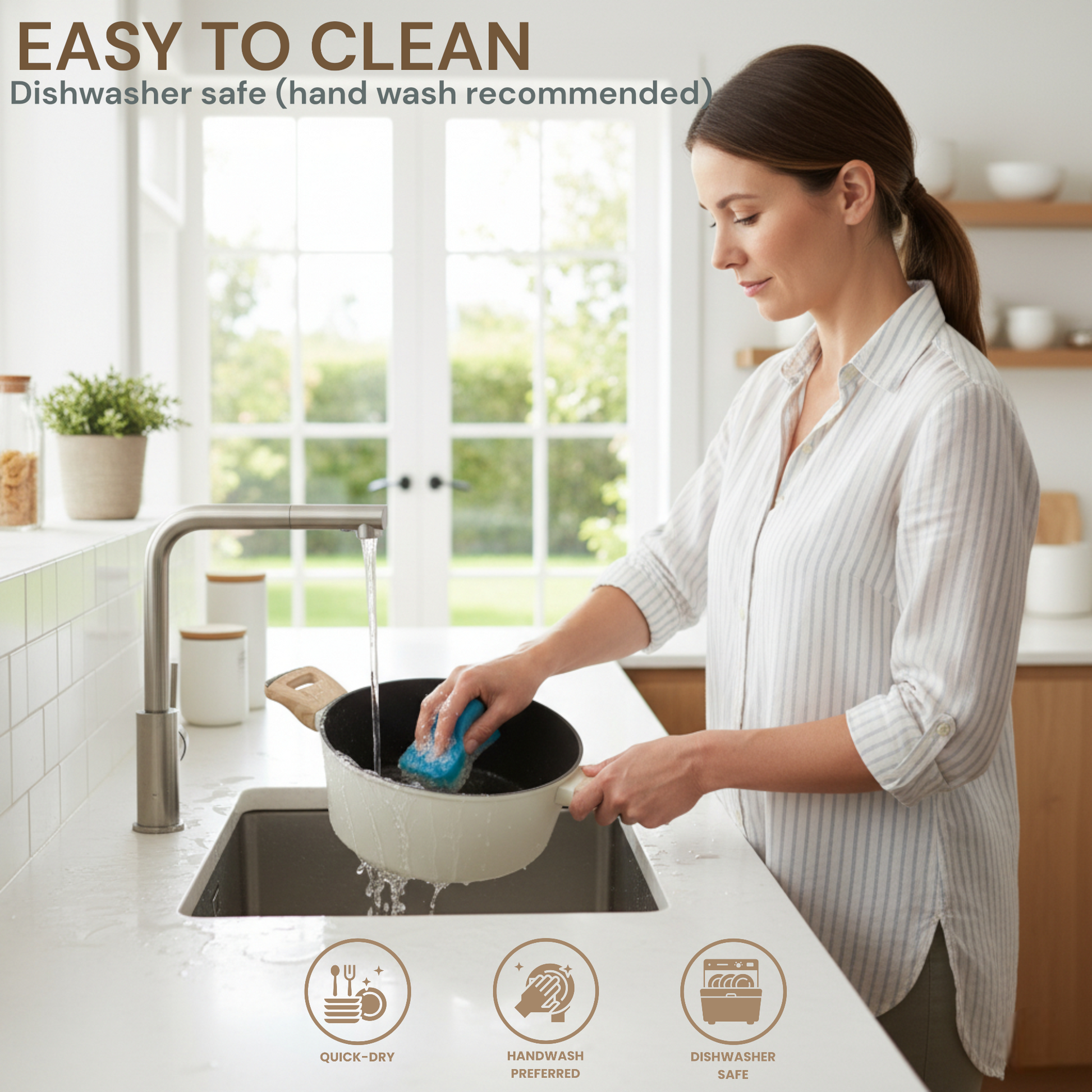 Introducing the Royal Swiss 10-Piece Cookware Set, a perfect blend of style, durability, and versatility for your kitchen. This elegant set, available in a sophisticated beige and black finish, is designed to meet all your cooking needs, from simmering sauces to frying up your favorite dishes. Each piece features wooden handles, adding a touch of natural warmth and comfort to your cooking experience.
